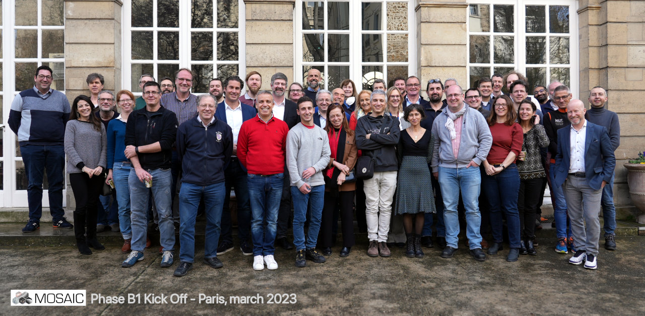 We are proud to announce that the ELT-MOSAIC project enters phase B1.This phase will be crucial for the consolidation of the instrument architecture and the availability of the planned resources, and is planned to last for 18 months, until its final specifications and architecture review (SAR). It is an important step for this ELT project conducted by an international consortium including 22 institutional partners located in 13 countries, led by the CNRS. The list of parties includes: University of Vienna (Austria), Universidade de Sao Paulo and LNA (Brazil), Universities of Helsinki and Turku (Finland), LAM, GEPI, IRAP, and OCA (France), AIP and Heidelberg University (Germany), INAF (Italy), NOVA (Netherlands), F. Ciencias and CAUP (Portugal), University of Madrid and IAA (Spain), Universities of Lund, Stockholm and Uppsala (Sweden), University of Geneva and EPFL (Switzerland), STFC/ATC, Durham University and Oxford RAL (UK), and University of Michigan (USA). More than 350 scientists and engineers participate into this effort. The MOSAIC Kick Off that took place in Paris on march 14th and 15th focused mainly on management organisation, and on internal engineering and scientific presentations. We would like to thank everyone involved in the project for this milestone achievement ! | ||